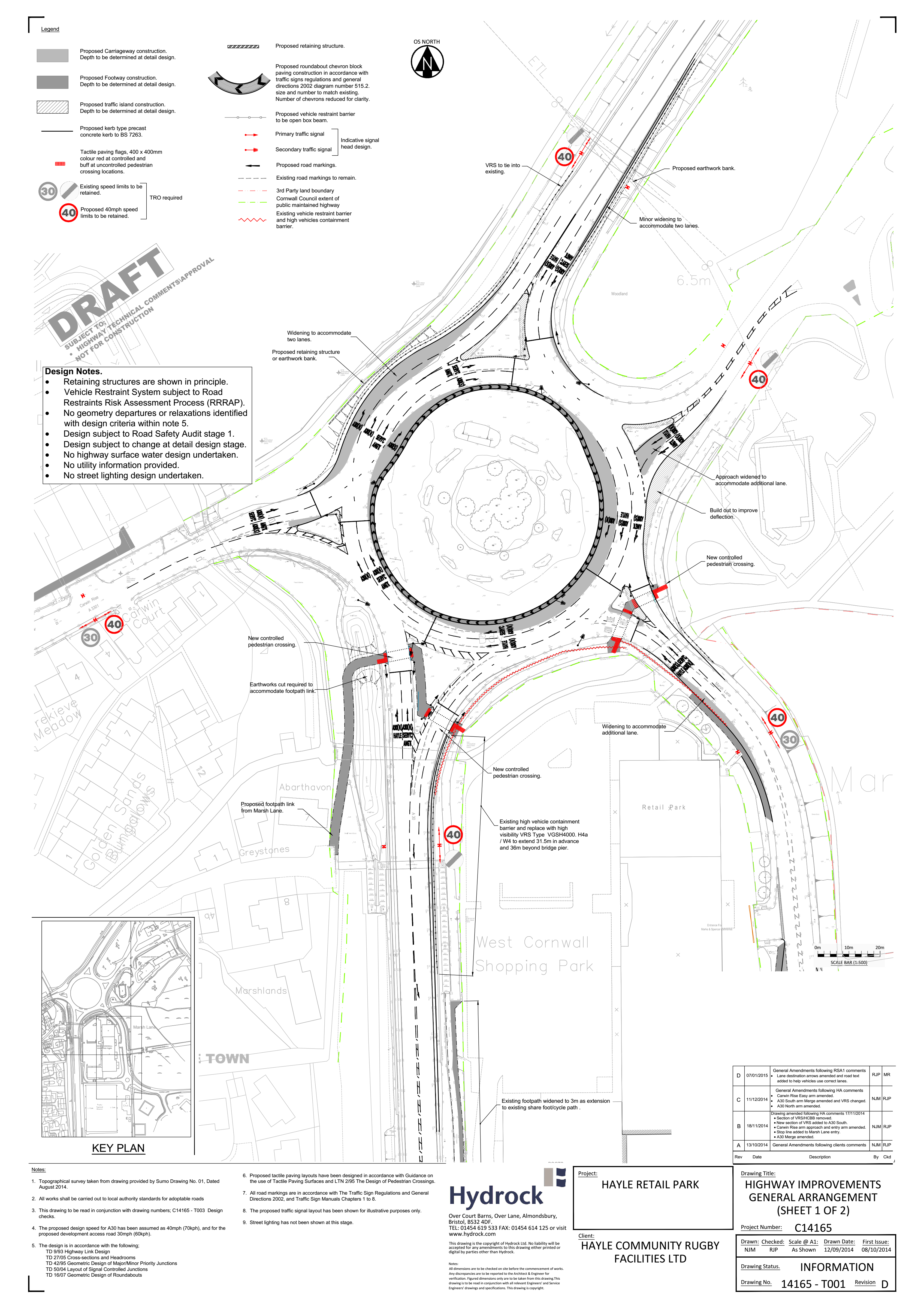 5 No part of the development hereby approved shall be occupied or brought into use until the highway improvement works to the A30/Carwin Rise/Marsh Lane junction (the "Loggans Moor Roundabout") as shown on Hydrock drawing number 14165-T001 Revision D dated 07/01/2015, are complete and open to traffic.