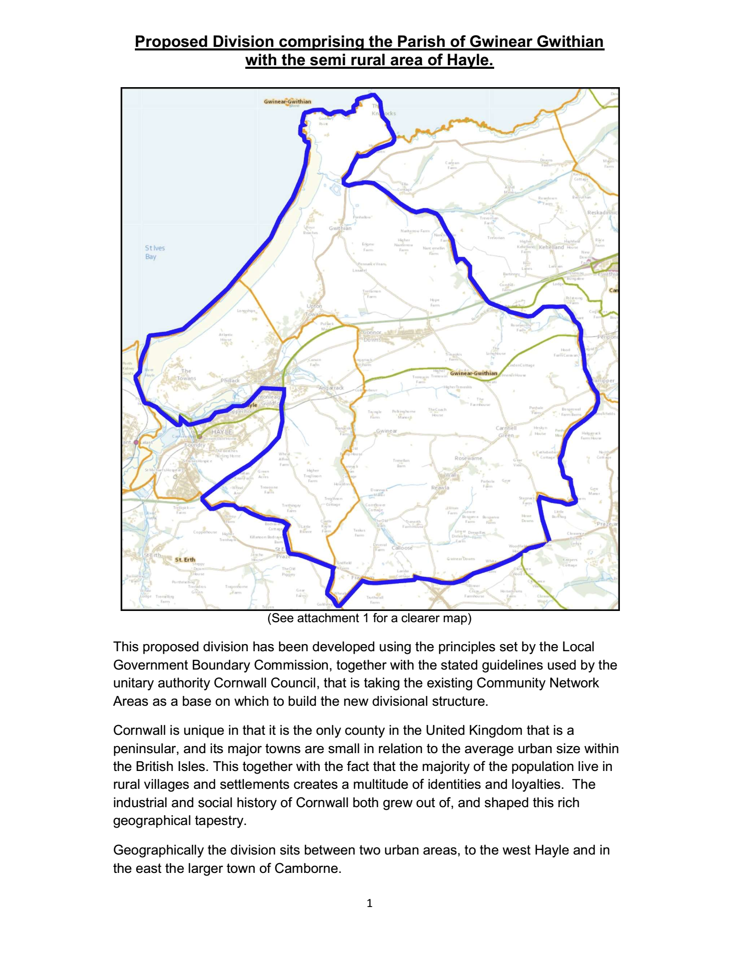 180202 | Proposed Division comprising the Parish of Gwinear Gwithian with the semi rural area of Hayle