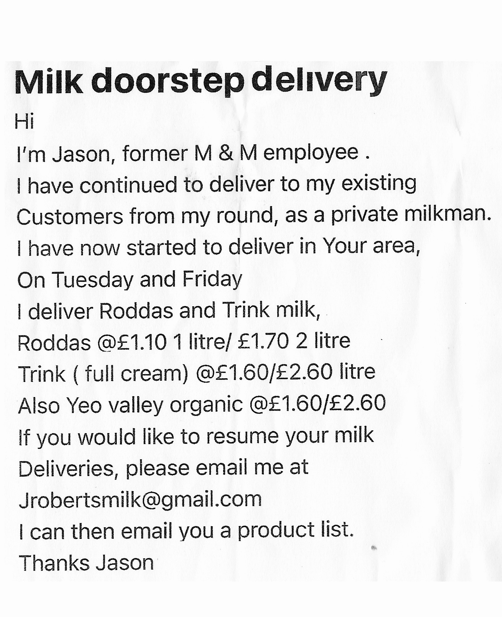 - 210124 | Milk doorstep delivery - Jason - former M&M employee