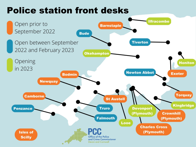 via https://www.devonandcornwall-pcc.gov.uk/news-and-blog/multimedia-hub/why-i-am-reopening-17-police-station-front-desks-says-commissioner/