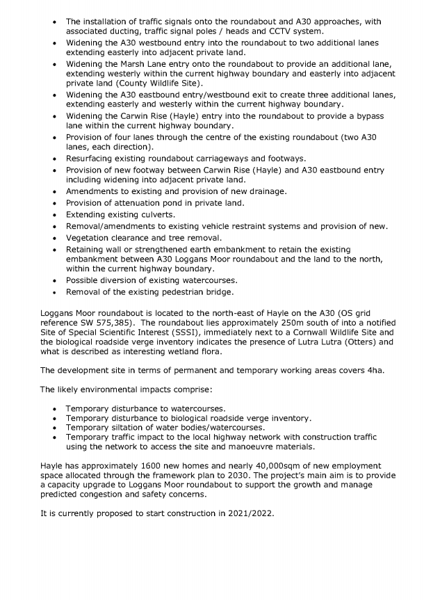 - PA19/02040 | EIA screening request for highway improvements to Loggans Moor roundabout - Hayle A30 Loggans Moor Roundabout