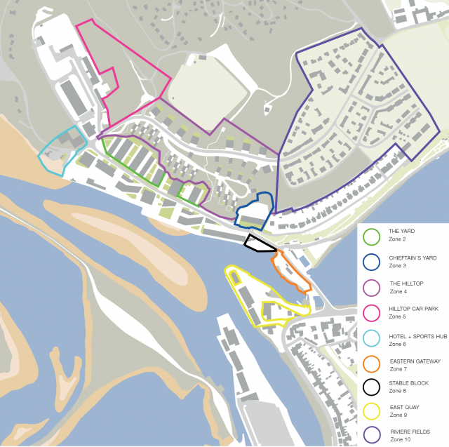 Key stretch of ‘Linear Waterfront’ connecting the town to the beach  and also two key areas identified within the Design Code - North Quay Entrance Space (3E), North Quay Waterfront Space (3F)