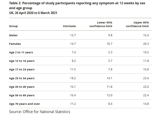 - 210331 | Children - 7.4% of those aged 2-11 years 8.2% of those aged 12-16 years - LongCovid - ONS Statistics