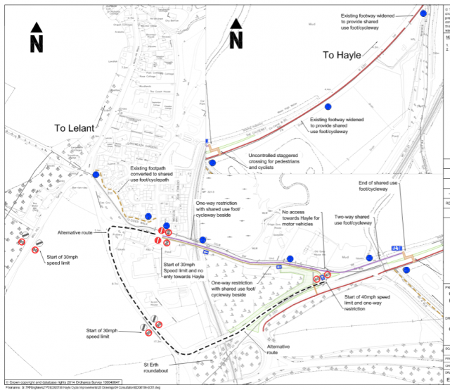 Cornwall Council is proposing to provide improved cycle and pedestrian access along Hayle Causeway to Lelant with shared use facilities and Traffic Regulation Orders.