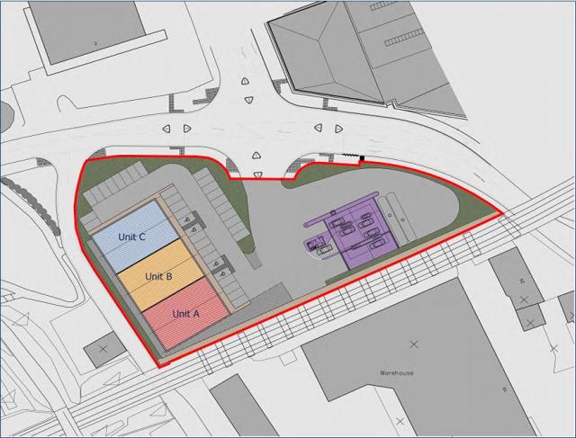 filling station. The accommodation will be built to a modern specification and is available by way of pre let agreements. There is