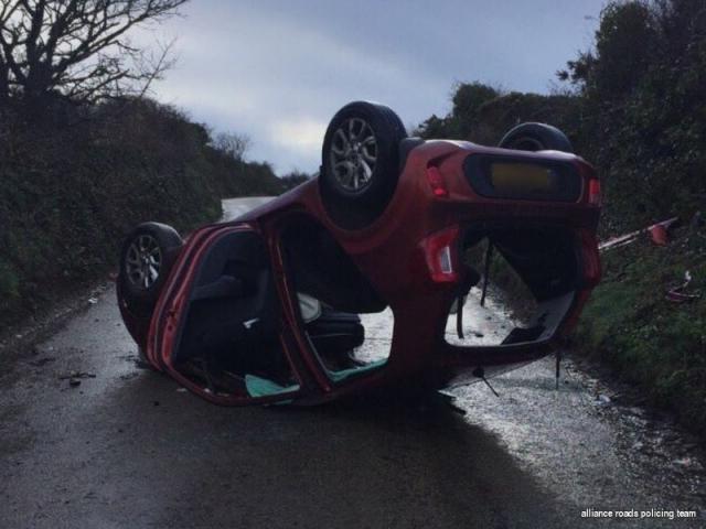 A car ended up on its roof at Wheal Alfred Road back in February.