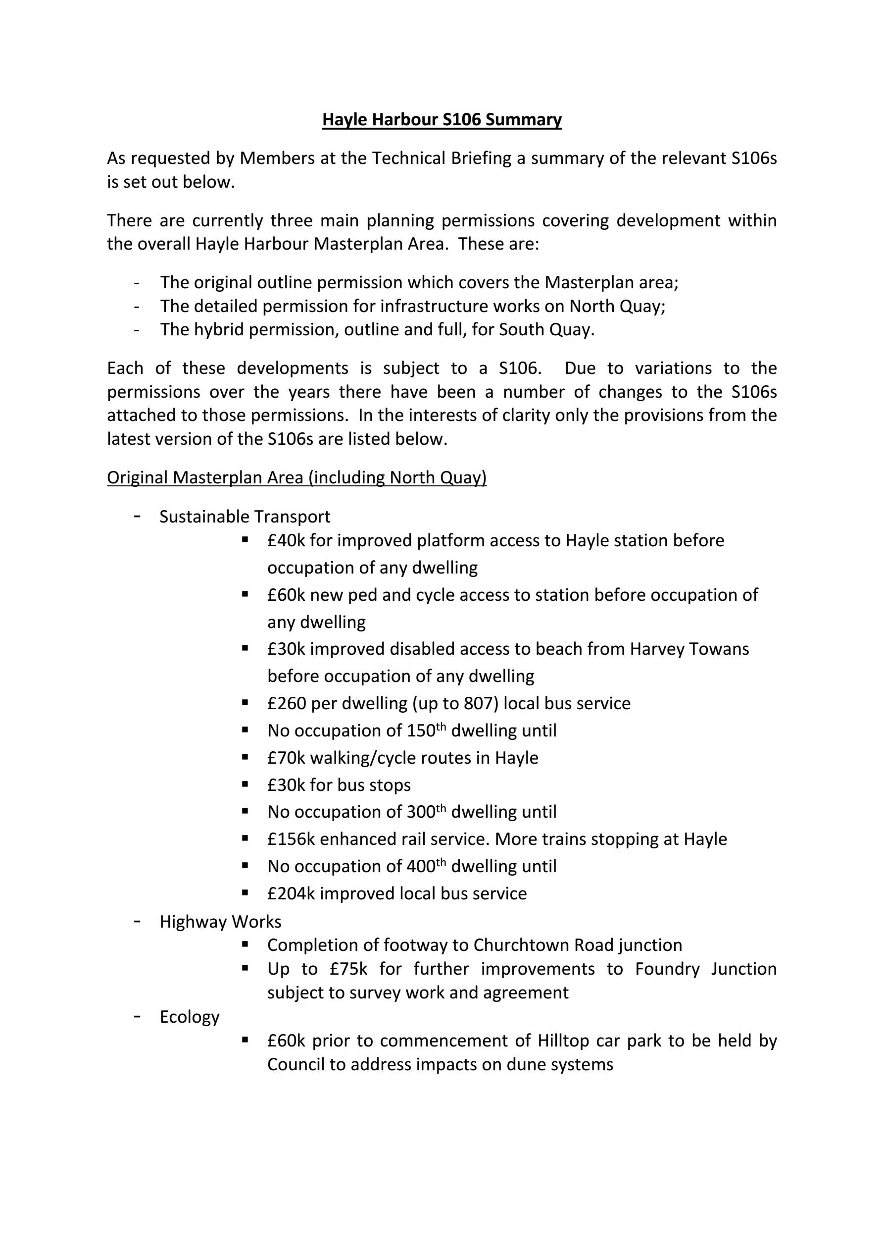 190502 | Hayle Harbour S106 Summary | Strategic Planning Meeting | PA18/04577