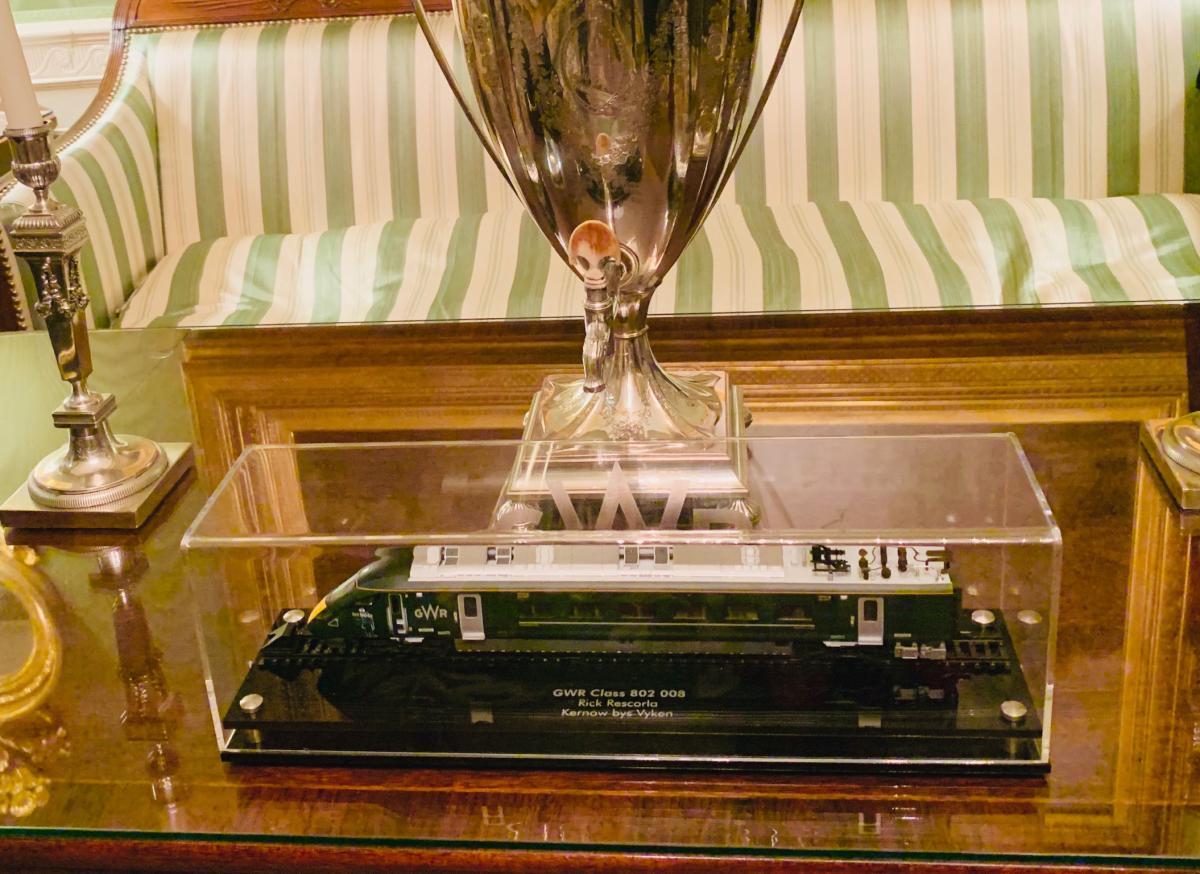 Paul presented him with a scale model of the GWR engine named after Mr Rescorla, a 00 gauge train made by Hornby.