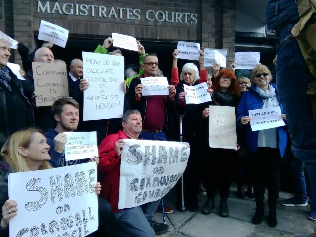 - 200219 |Campaigners gather at Truro magistrates court for council tax protest as 14-year row over Hayle water pipe takes new twi