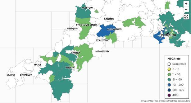The South West as a whole has 28,250 positive cases and a rate of 502.2 per 100,000 people, which remains the lowest in the country.