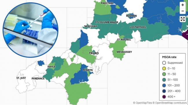The figures show 17 cases in Falmouth - a rise of six since Saturday - while cases in Ponsanooth, Mabe Burnthouse & Constantine have doubled, to 12.