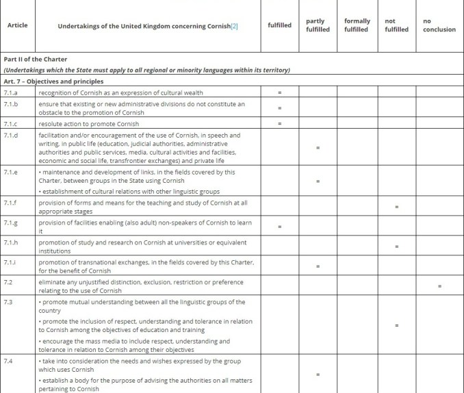 The Cornish Language is also recognised by another CoE treaty called the European Charter for Regional or Minority languages. Under this charter the UK government is supposed to protect and promote Cornish.
