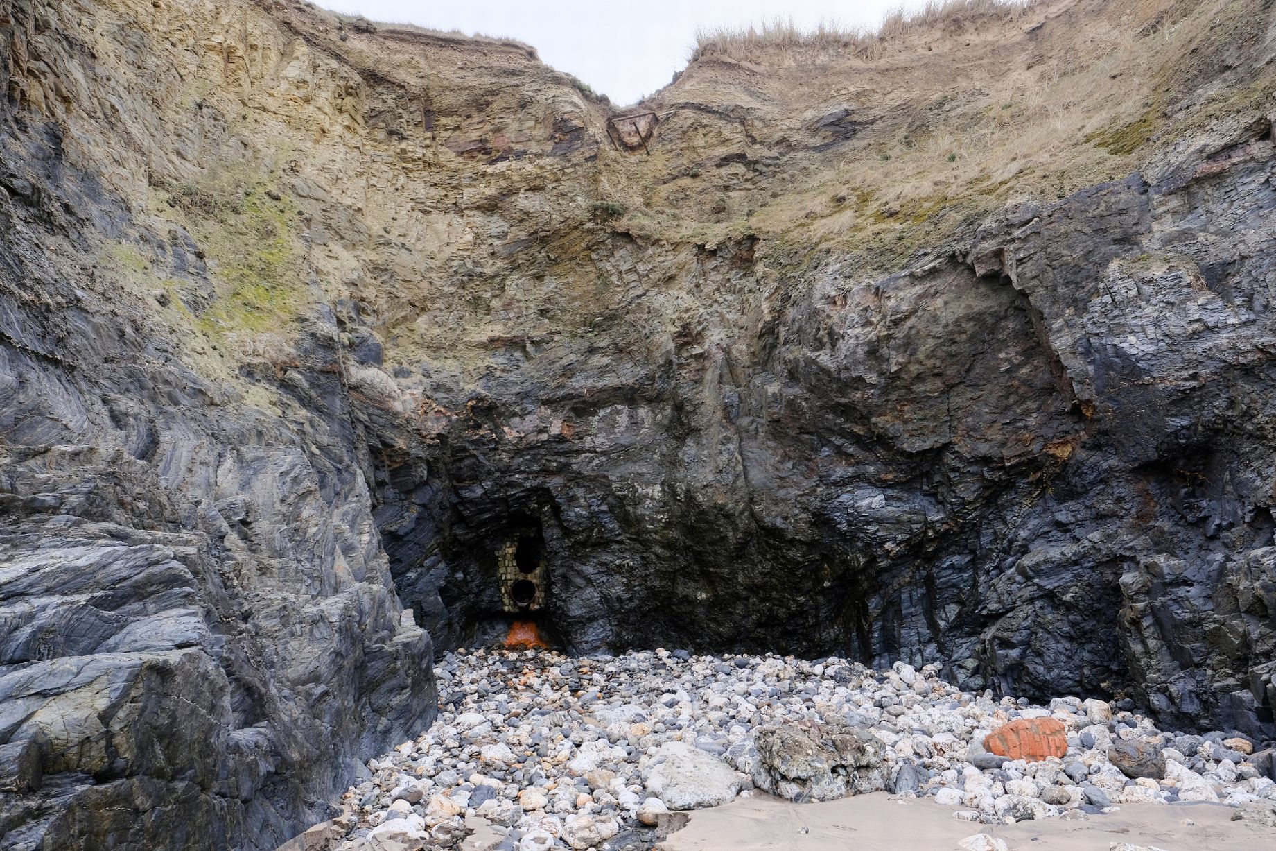 “The beach end of the tunnel, being cut in rock is still there, but erosion has all but destroyed the tunnel in the softer ground above it.