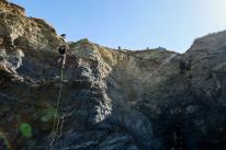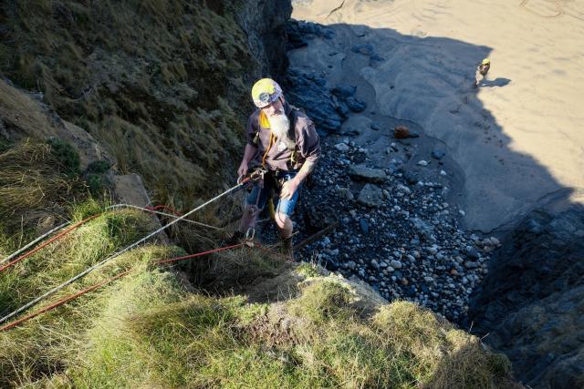 Dangling safely over the cliff-edge, members of the crew cleared away vegetation that was obscuring the cart, making it more visible for beach-goers to spot. Graham Wall and Sam Perkin from Carbis Bay Crew summarise the history of the cart, clearing up some of the recent speculation that it is a mine cart from the nearby Wheal Emily, a lead and copper mine which was abandoned in 1877.