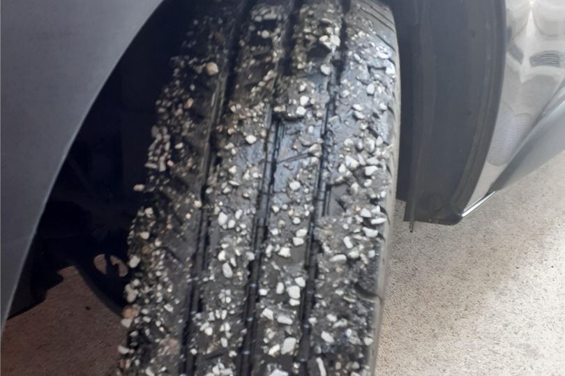 "Both passenger-side tyres were completely covered in melted Tarmac," she said. "I phoned my garage straight away and asked what to do.