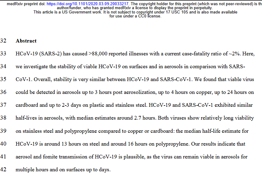 Median half-life estimate around 13 hours on steel & around 16 hours on polypropylene" #coronavirus