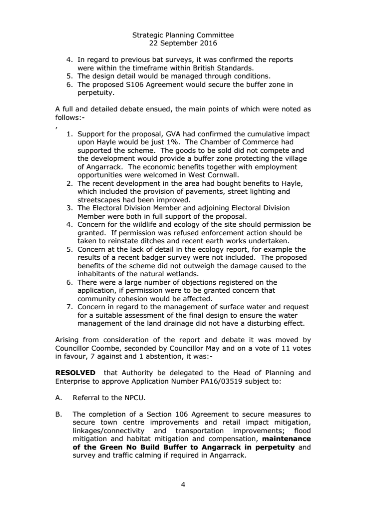 - Minutes extract SPC | PA16-03519 - HAYLE RETAIL PARK AND MARSH LANE NATURE RESERVE MARSH LANE HAYLE CORNWALL CRANFORD (HAYLE) LL
