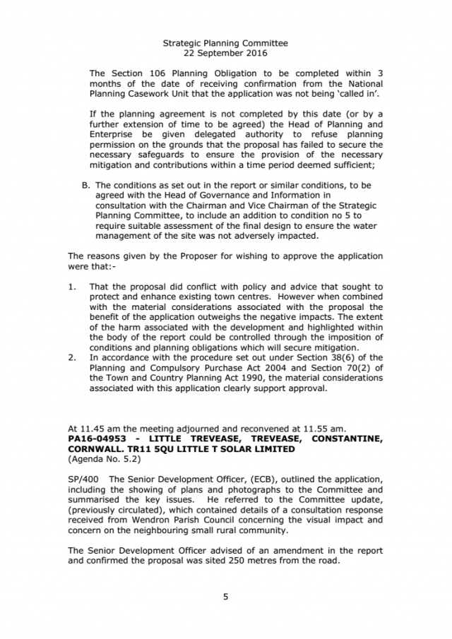 Minutes extract SPC | PA16-03519 - HAYLE RETAIL PARK AND MARSH LANE NATURE RESERVE MARSH LANE HAYLE CORNWALL CRANFORD (HAYLE) LL