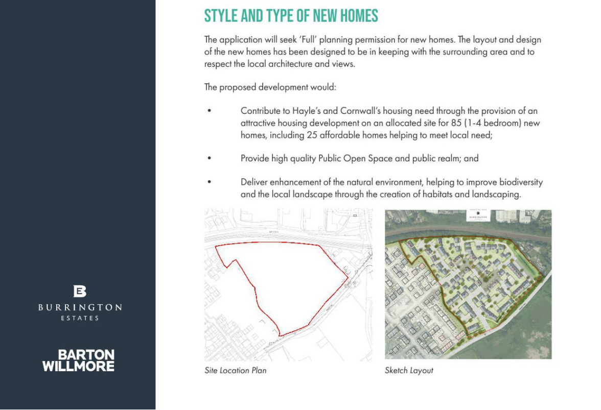 PA20/11368 | Erection of 85 residential dwellings with associated landscaping and infrastructure. | Land Off Viaduct Hill Viaduct Hill Hayle Cornwall TR27 5HT
