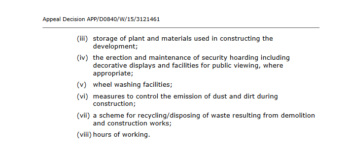 (vi) measures to control the emission of dust and dirt during construction;