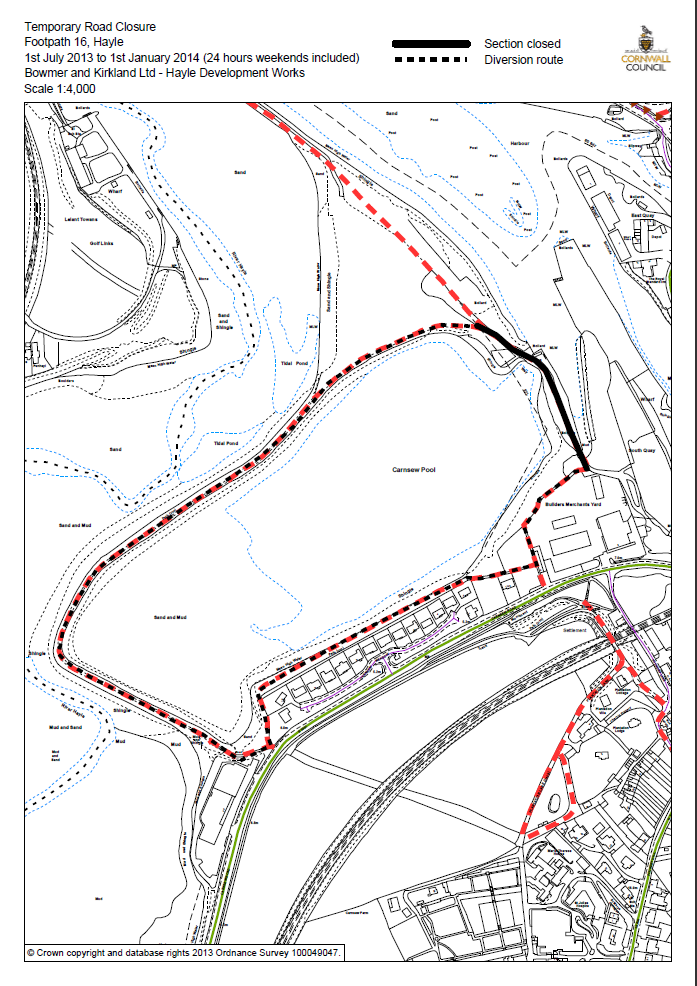 - 130626 | Closure Footpath 16 development works to 1st Jan 2014 | Cornwall Council