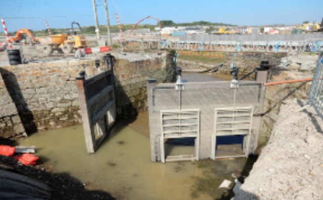 New sluice gates have been fitted to Carnsew Basin in Hayle as part of the plans to resume a sluicing regime, part of the South Quay development by ING.
