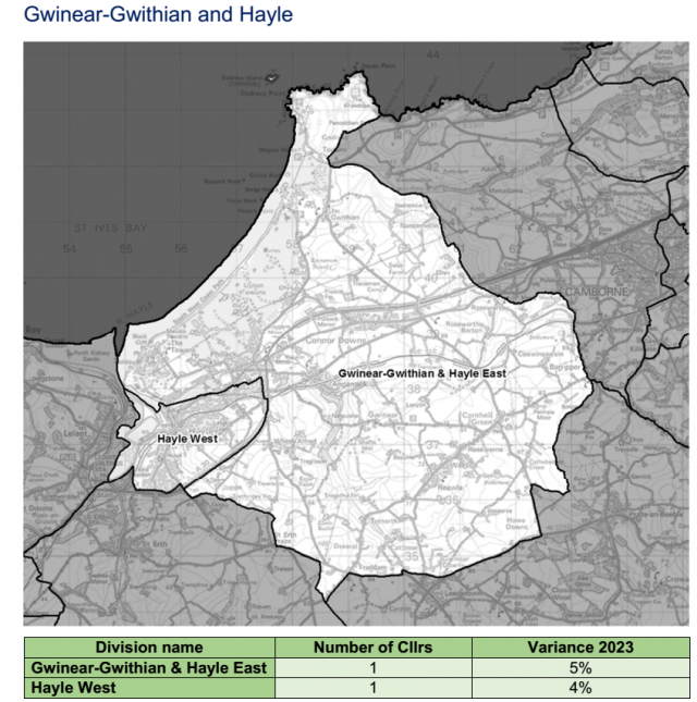 Gwinear-Gwithian & Hayle East division which would have a variance of 5% by