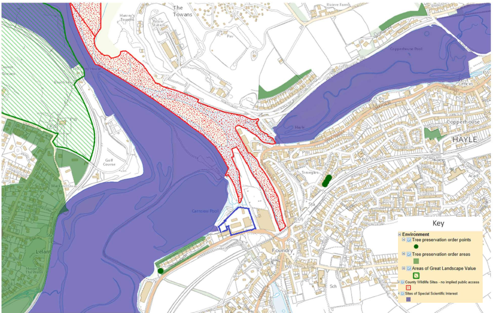 The site does not lie within any designated wildlife areas but it borders the Hayle Estuary and