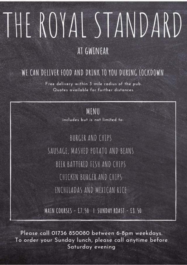 Our good friends at the Standard are offering a valuable delivery service and I can vouch that their food is very good. They will deliver to Angarrack. Suzi xx