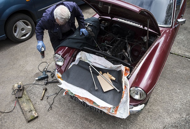 In a small garage nestled on the side of a busy road in Nancledra, Hugh Hunter contemplates hauling the engine out of a 1975 MG.